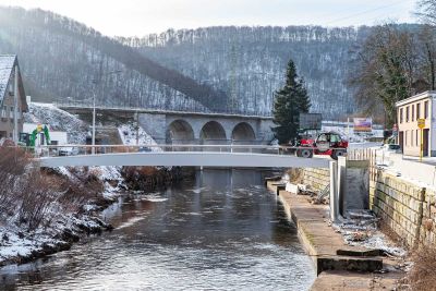 Tekst: Les 2 anciens ouvrages, franchissant la Vesdre à Nasproué et La Raye à Verviers, fortement sinistré par les inondations de 2021, sont remplacés par des nouveaux ouvrages composés de 2 poutres en caisson trapézoïdal à hauteur variable. Le tablier central est une dalle en béton coulée sur prédalles d’une largeur utile de 4 m. Ces 2 ouvrages ont été réalisés dans un marché unique de par leur analogie de conception et de dimensions. Les quartiers desservis par ces ouvrages fortement enclavés nécessitaient un timing de chantier avec coupure du passage limité. La conception de ces ponts entièrement préfabriqués a permis de limiter la période de coupure entre la pose de l’ouvrage et la mise en service à moins d’un mois et demi. La structure en acier possède une portée principale de 21 m et 26 m respectivement, sans pile intermédiaire augmentant ainsi la section hydraulique de la rivière en cas de future crue, pour un poids de 32 et 40 tonnes environ. De plus, tous les impétrants ont été intégré dans le tablier et les caissons structurels d’un part pour une meilleure intégration esthétique de l’ouvrage et d’autre part pour protéger ces réseaux en cas de future crue.