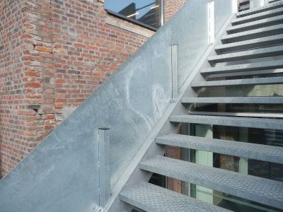 Tekst: <p>Le nouvel escalier en colimaçon dessert plusieurs niveaux d'un penthouse dans un bâtiment existant. La construction comprend l'escalier elliptique en colimaçon avec des plaques torsadées ainsi que les différents niveaux du penthouse.</p><p> L'escalier repose sur une lourde poutre en béton qui a été exposée et mesurée avec précision. Le modèle 3D a ensuite été utilisé pour traduire la torsion de l'escalier en dessins exécutables, en alignements de dalles et en assemblage de la structure. </p><p>Bien que l'escalier en colimaçon ne pèse que 4,2 tonnes au total, il a été divisé en plusieurs parties de construction. Ces pièces ont en fait été hissées au sommet du penthouse et introduites par une étroite ouverture sur le toit du bâtiment. Les différentes parties de la construction ont ensuite été soudées ensemble sur place. Des accouplements d'assemblage ont été utilisés pour maintenir les relations entre les différentes parties de la construction.</p>