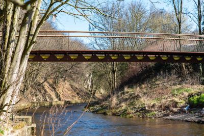 Tekst: D’une portée de 22 m pour 4 m de large, cette passerelle à Verviers s’articule autour d’un profilé reconstitué soudé (PRS) à hauteur variable qui délimite deux cheminements, un cheminement direct et une promenade en arc. Le support du platelage s’étend quant à lui en porte-à-faux de part et d’autre sur cette poutre considérée comme la colonne vertébrale de la passerelle. La torsion engendrée par des chargements dissymétriques est reprise par un arc déconstruit formé des tubes latéraux : l’un rectiligne assure le rôle de tirant et l’autre selon la forme de l’arc.
