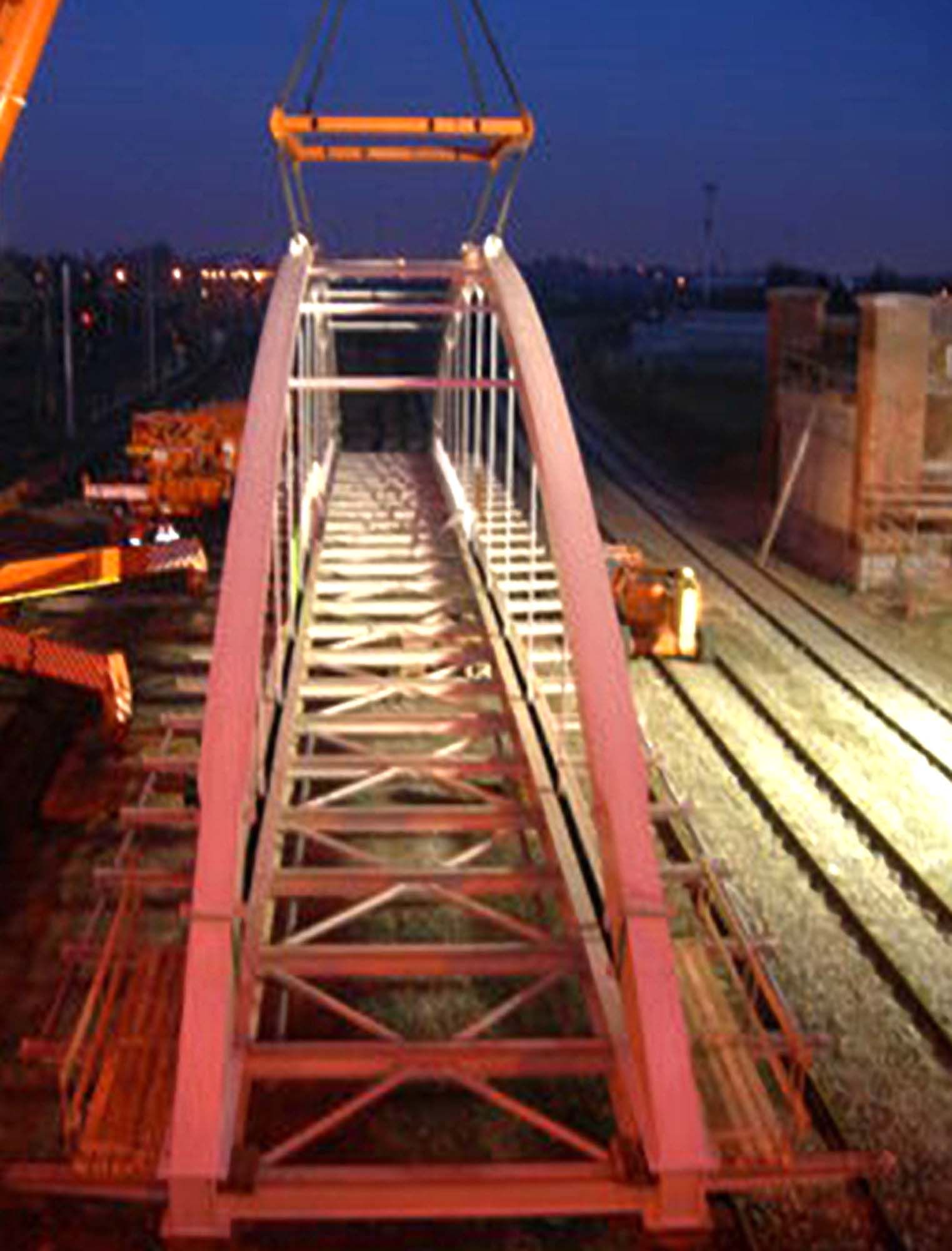Comme le cahier des charges imposait des critères de fatigue assez sévères, il a été nécessaire d’affiner encore ces essais. Grâce à l’utilisation d’une structure portante en acier, il a été possible de limiter au maximum les travaux sur chantier. En effet, comme le pont surplombe des voies de chemin de fer très fréquentées, il était crucial de limiter au maximum la durée de montage. Une fois de plus, l’acier a prouvé sa force sur ce point grâce à un montage rapide.